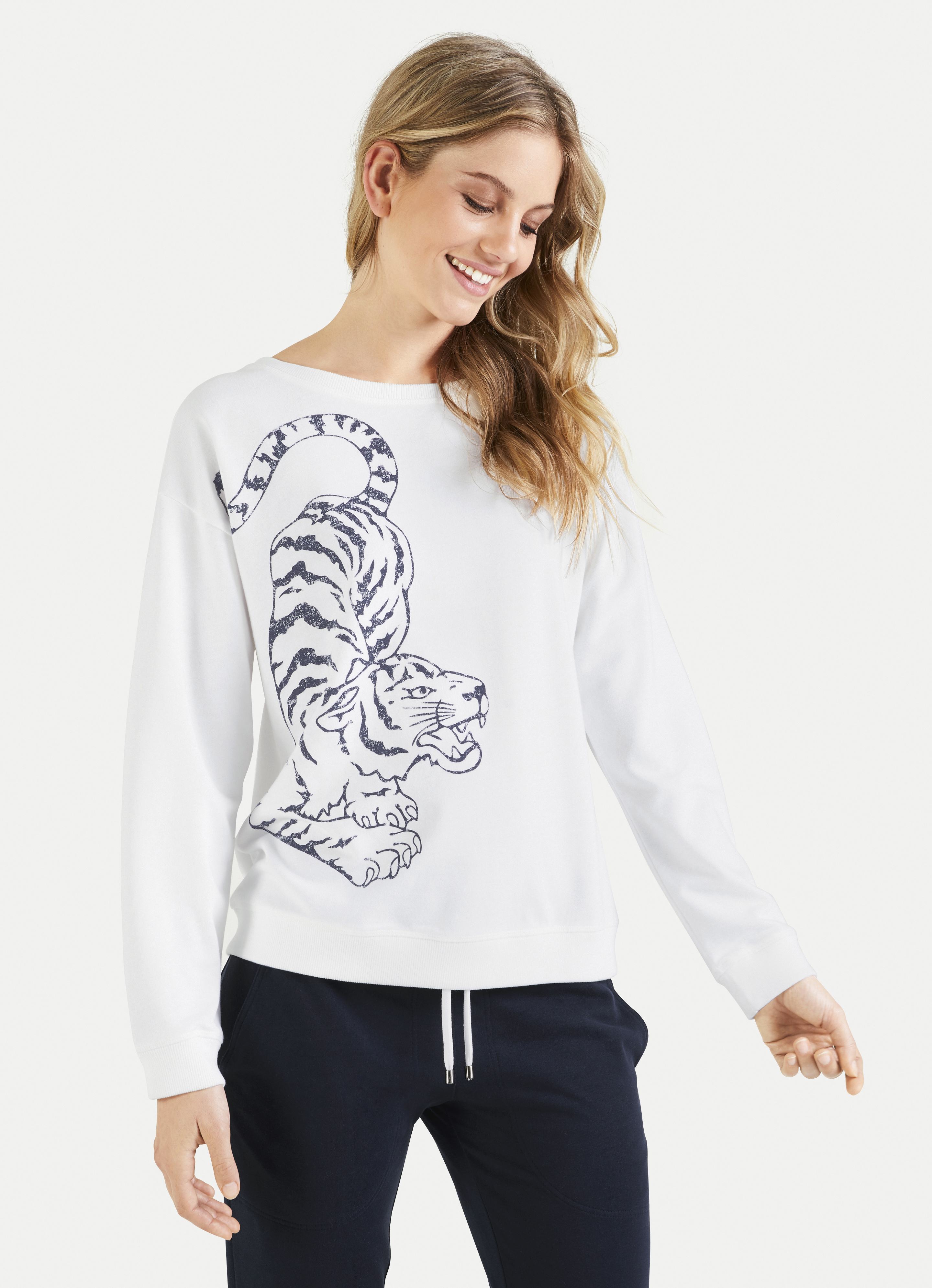 Unter den Begriff Homewear fallen Trainingsanzüge, Shirts und Jumpsuits.